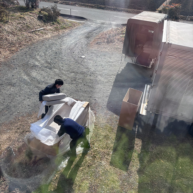 2階の窓から入れる事も検討したけど養生のキルト敷くとちょうど通らないサイズだった。今日から新しいソファーで昼寝できると思っていたのにがっかり。