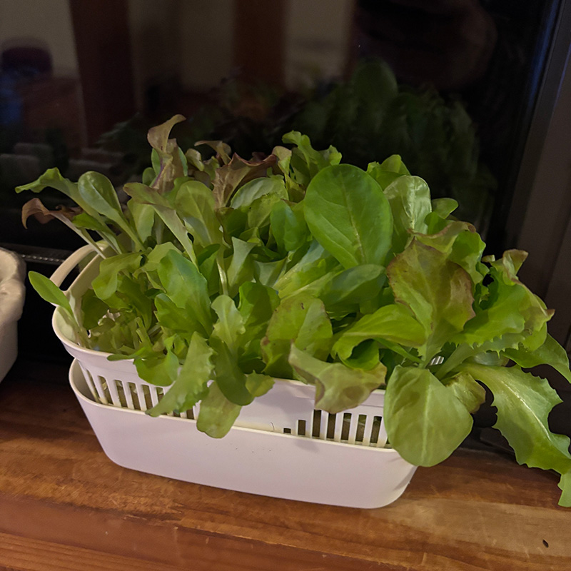 水栽培の小松菜を油揚げと炒めたもの。