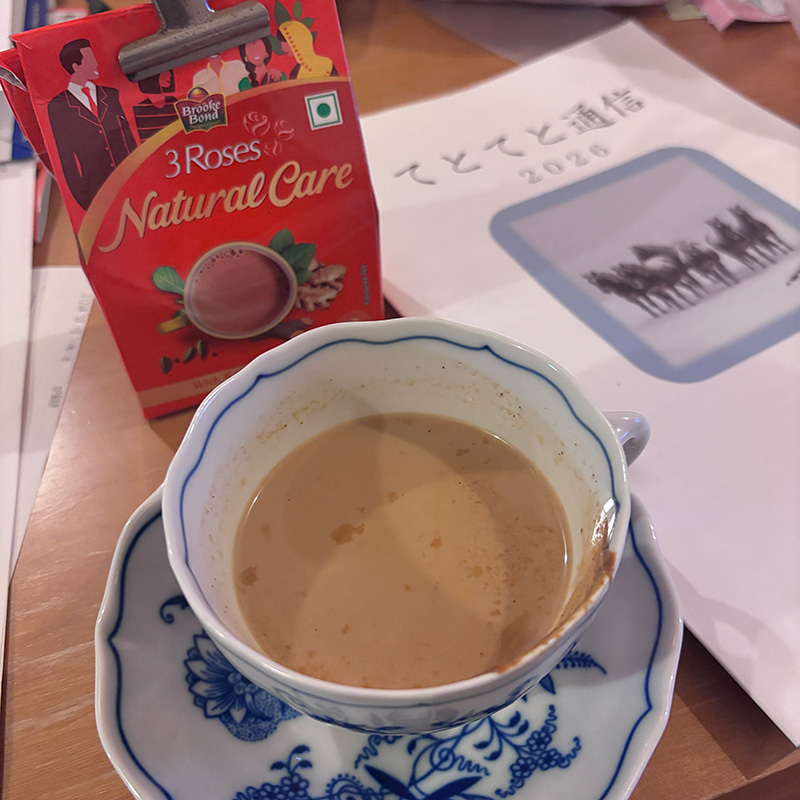 カミさんがチャイ淹れてくれた。牛乳とハチミツで。
