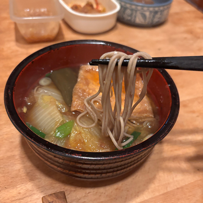 春の陽気 肉体労働で汗かいた。気温17℃。春だねぇ。 美味しい美味しい白菜の菜花も もう少しで食べられそう。 美味しいルッコラの花も 今が盛り。 月曜日は麺曜日。蕎麦。畑から大根抜いてきてすりおろして昆布水に加えて昆布も加えて炊く。 かつお節パックを揉んで更に投入。漉さないでそのまま。畑の白菜追加。 最後に畑の甘くて柔らかい長ネギ。 お揚げを甘辛く煮てでキツネの揚げも。 昆布水を常備してるし何年も月曜日につゆ作ってたら 麺つゆの元使わなくても短時間で味わい深いつゆ作れるようになった。 2026年3月23日 | コメントはまだありません | カテゴリー: 三日坊主日記