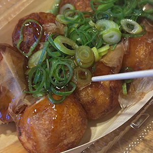 シャキシャキ青ネギと香り豊かなゆずソースの”ねぎだこ”を注文。5個入りを頼んだら閉店間際だから8個入りにしますねー。だって。「多すぎて困りますか?」って何てホスピタリティの高い。「(カミさんと)ふたりで食べるので嬉しいです」と言ったら長いヨウジも2本つけてくれた。大きなタコが入っていてふわふわ。