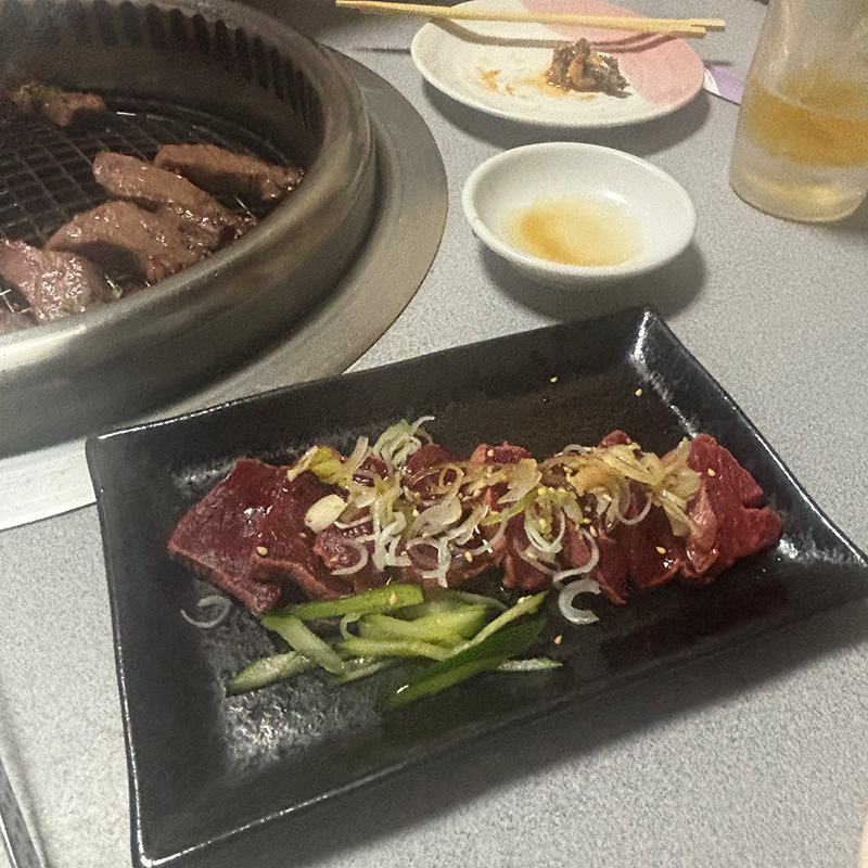 登正門で焼肉 家の裏の一目五本桜。7分咲き。 焼肉ご馳走していただいた。 厚切り芯タンは普通の牛タンとは全く違う食感。 旨味もすごい。 せんまいの刺身が本当に美味しい店。 すき焼きのように生卵に絡めて食べる 北海道産10秒ロース。 ナムル。 後半ホルモン。シマチョウ。ハツのさくさくした食感、最高。 〆はコムタン。テールスープの出汁がすごい。人気で満席。滅茶苦茶美味しかった。ごちそうさまでした! 2026年4月10日 | コメントはまだありません | カテゴリー: 三日坊主日記