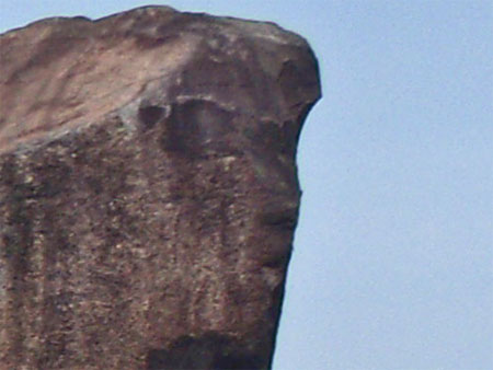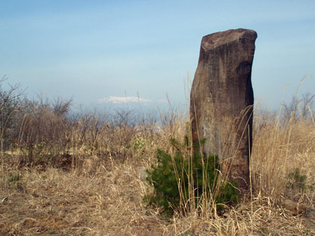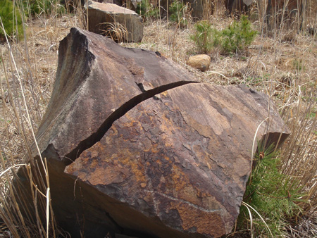 「お迎え石」と社長さんが呼んでいる石。採石場の入り口に建ててある。立てただけでこの美しさ。
